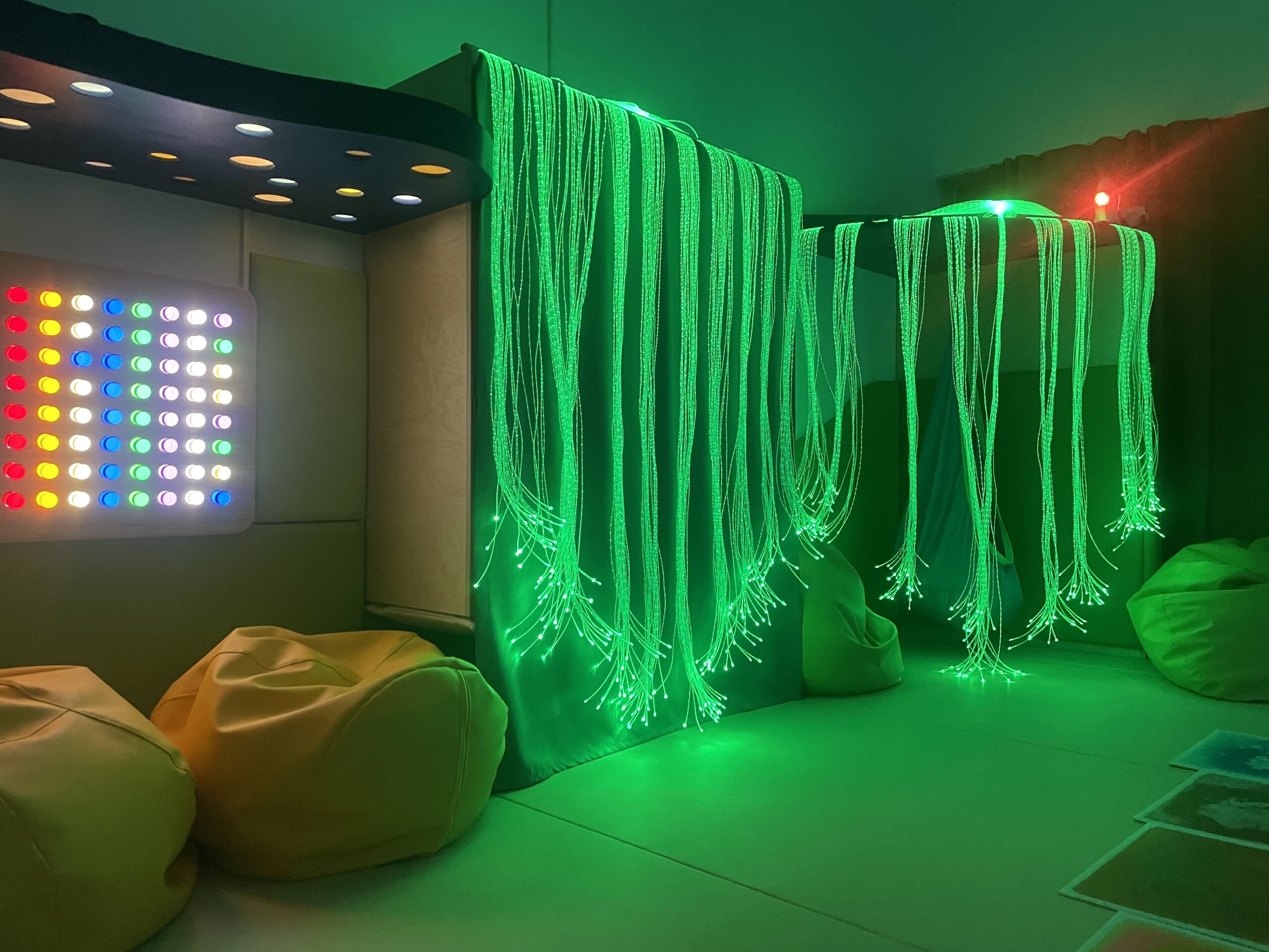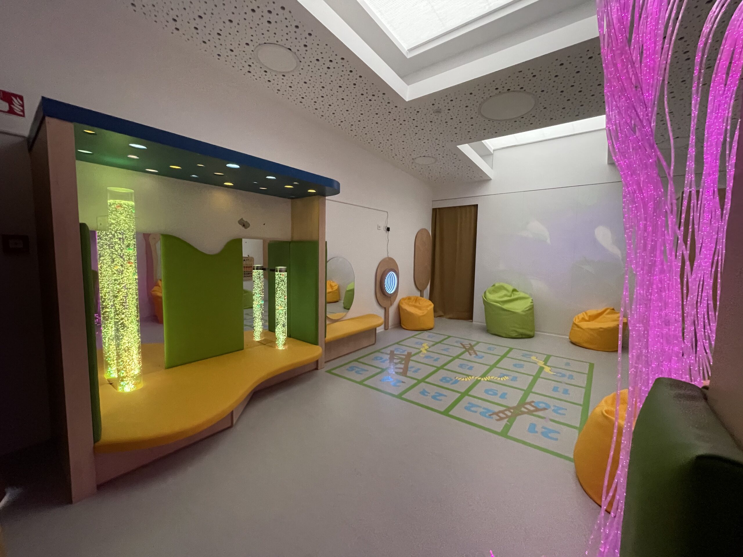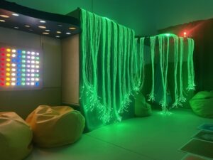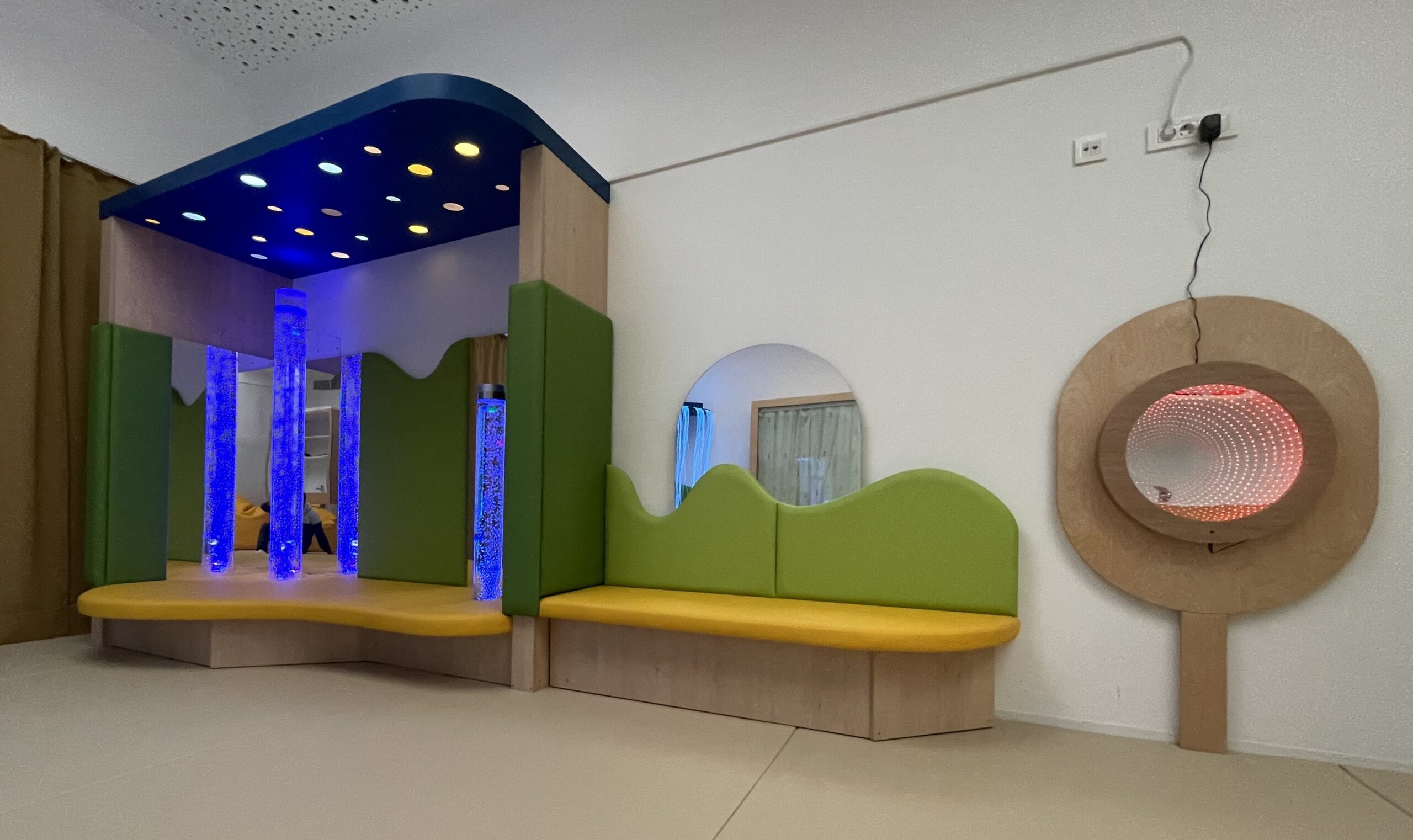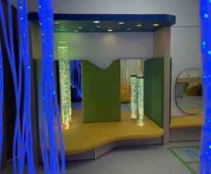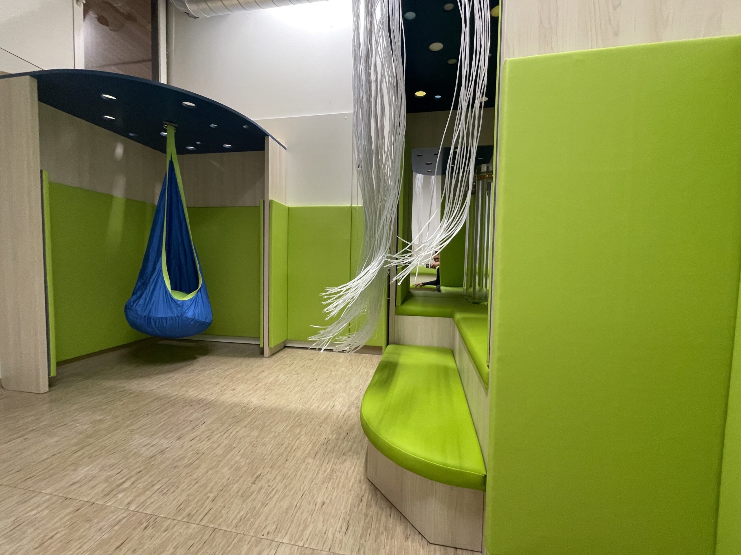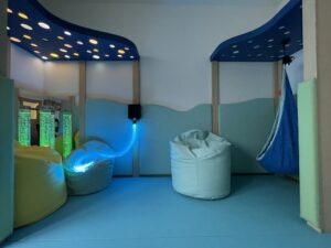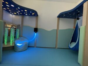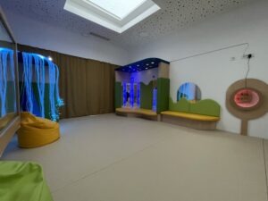 Tiha ali senzorna soba je mirno, mehko in toplo okolje, ki združuje potrebe otroka po umiku, umiritvi, sprostitvi in senzibilaciji čutil. Oprema je profesionalna in omogoča tudi izvajanje terapevtskih programov. Elementi opreme v senzorni sobi: oblazinjeni podesti, blazine in blazinice, oblazinjene stenske obloge, vodni stolp, strop nebo, svetleči laski, stropna krogla, stenski projektor, viseči stol, omarice, zabojčki, police, ogledala, senčila in zavese.